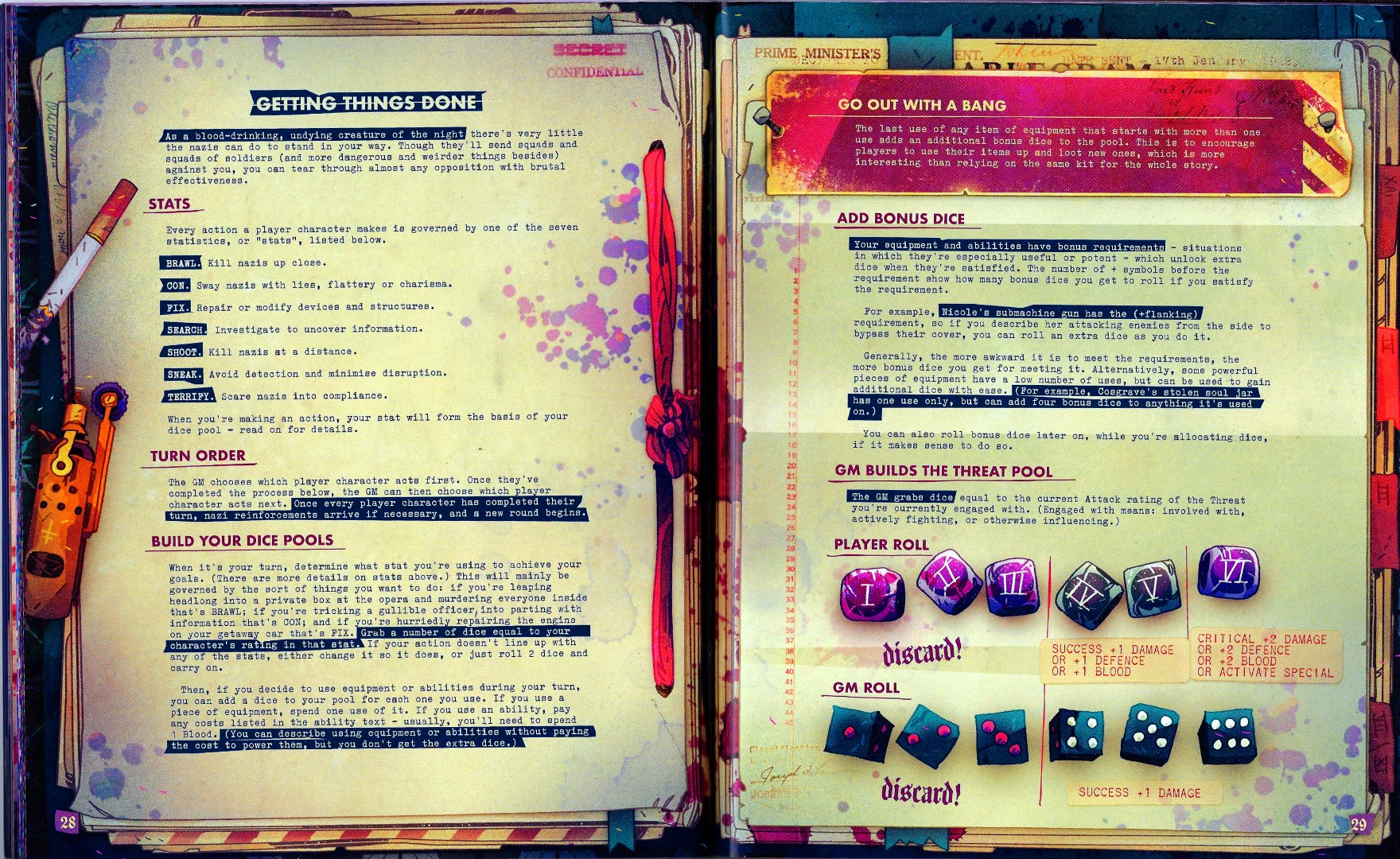 Looking at the images as a whole, I was drawn to more graphic, stylised approaches. I was also influenced by elements of skeuomorphism, particularly in publications that made their game rules feel like they were practical guides. Many of the options I was drawn to had bold colour choices.