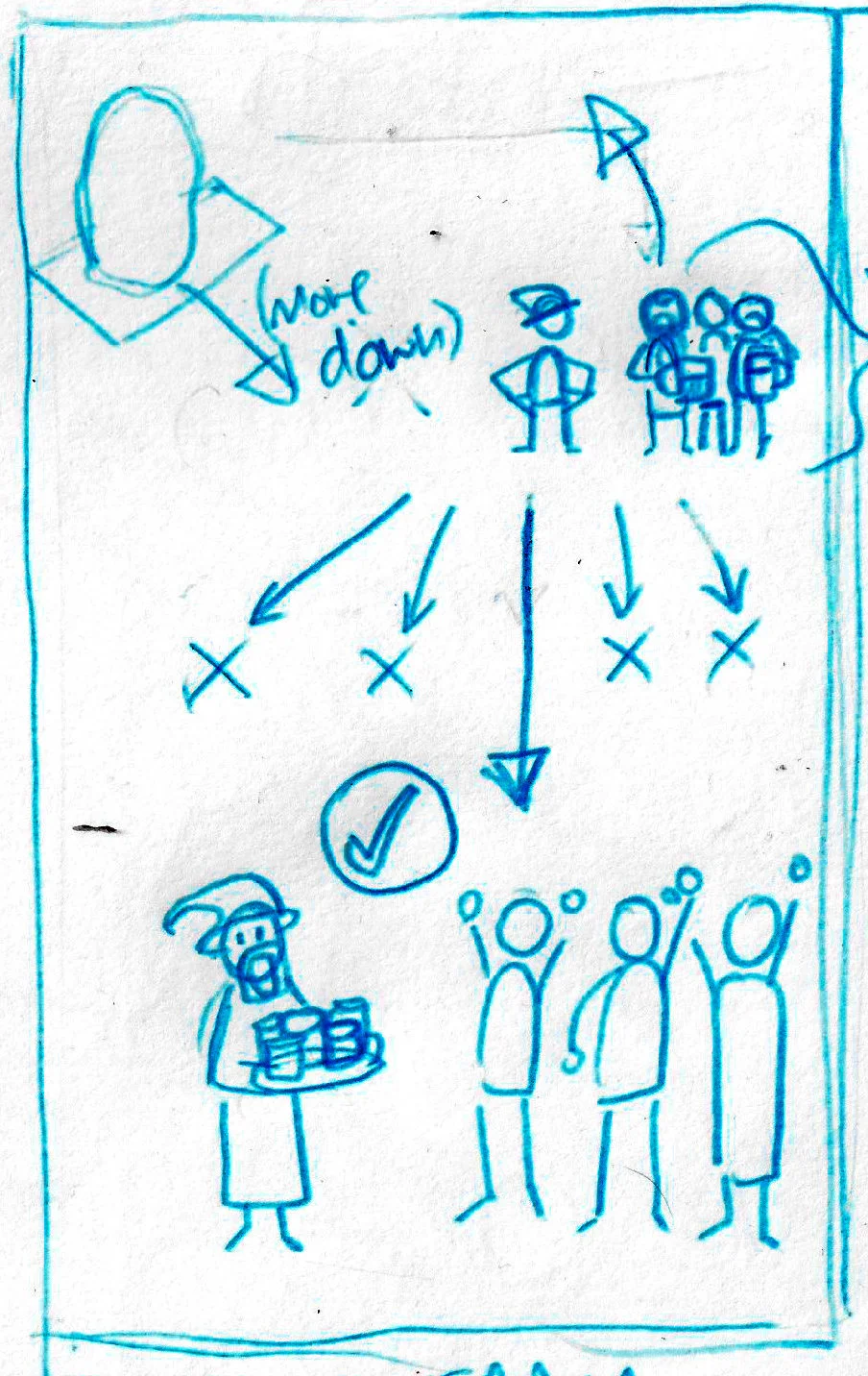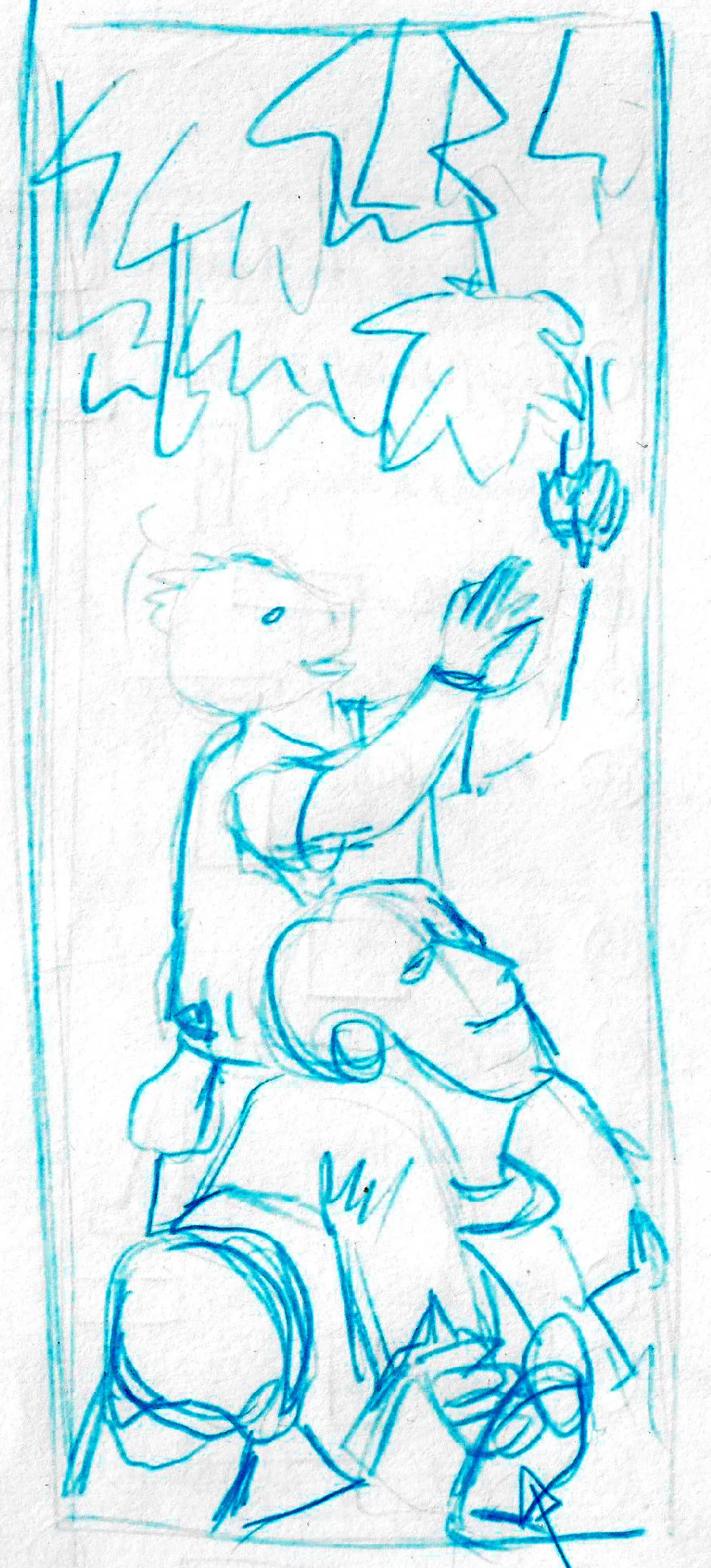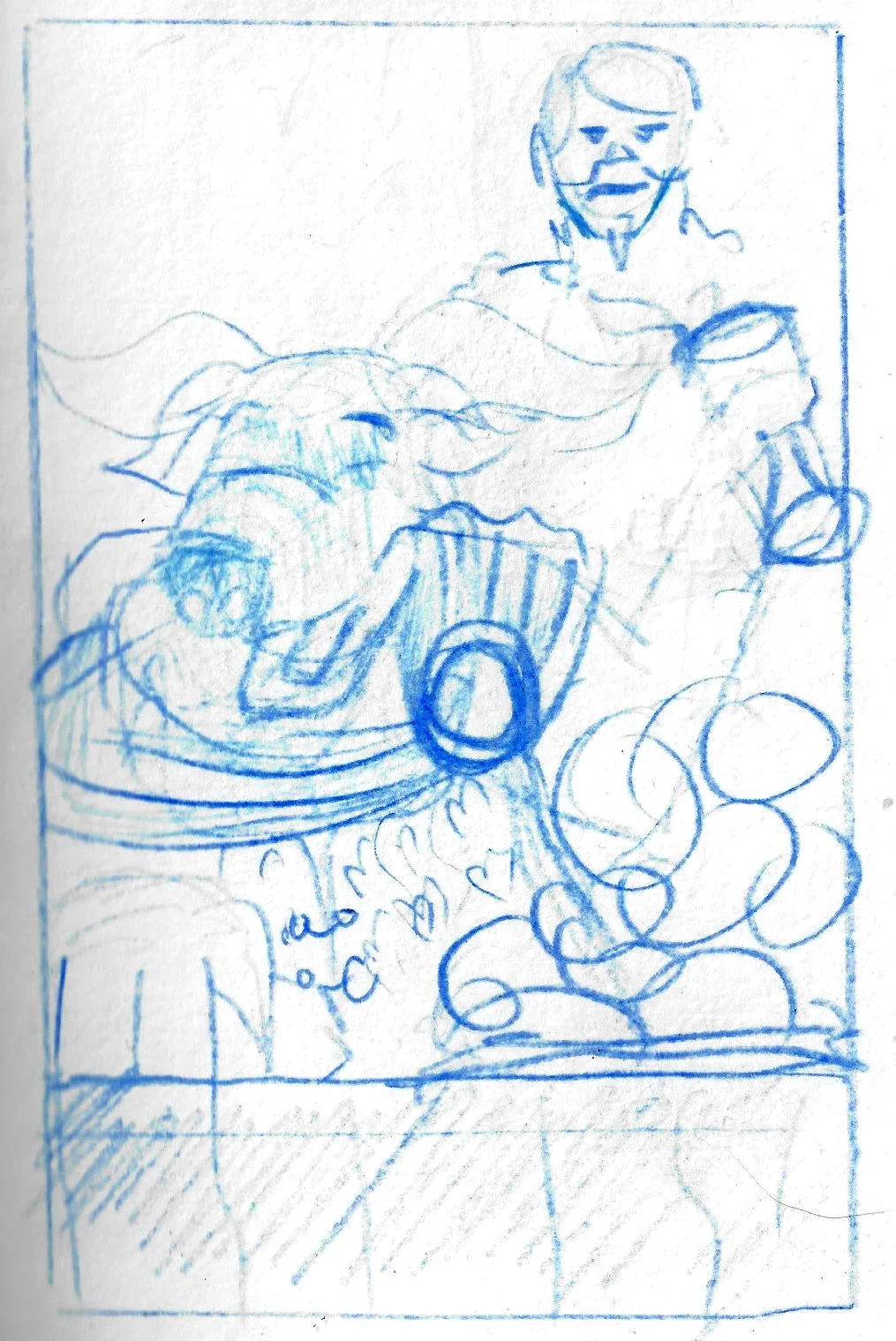 I then started to sketch out some rough thumbnails with some broad ideas which I could then scan and develop more digitally.