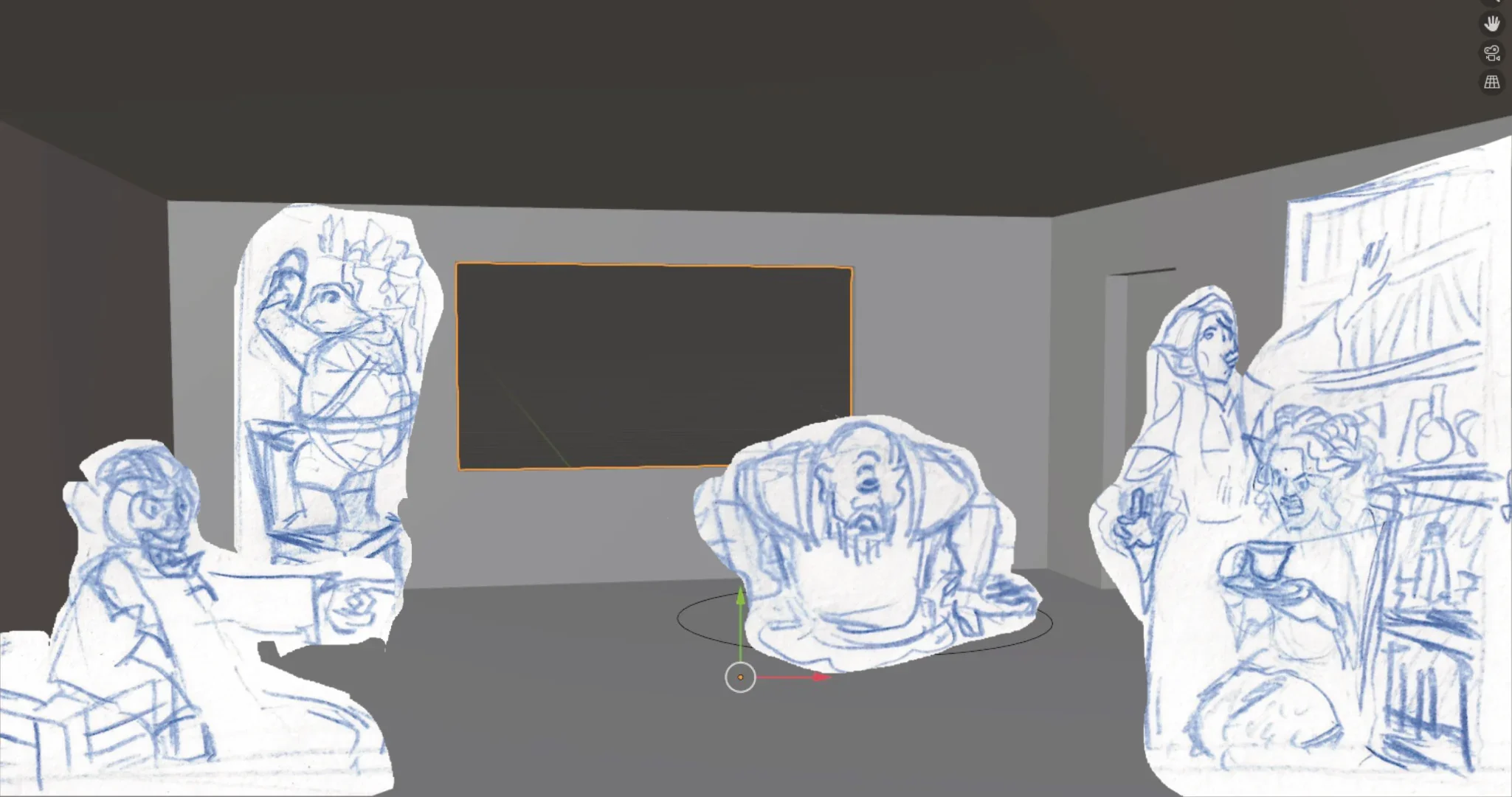 I liked the premise of the thumbnail, but I knew that the layout and perspective were all off. Working with the idea that I needed to 'see' the space to imagine them in it, I went to Blender, and researched enough tutorials to learn how to construct the room's layout through simple shapes and geometry. I didn't try and do anything fancy with the in-built camera and exports, I simply moved the tool's viewpoint until I had the view into the room that I was after - and took a screenshot!