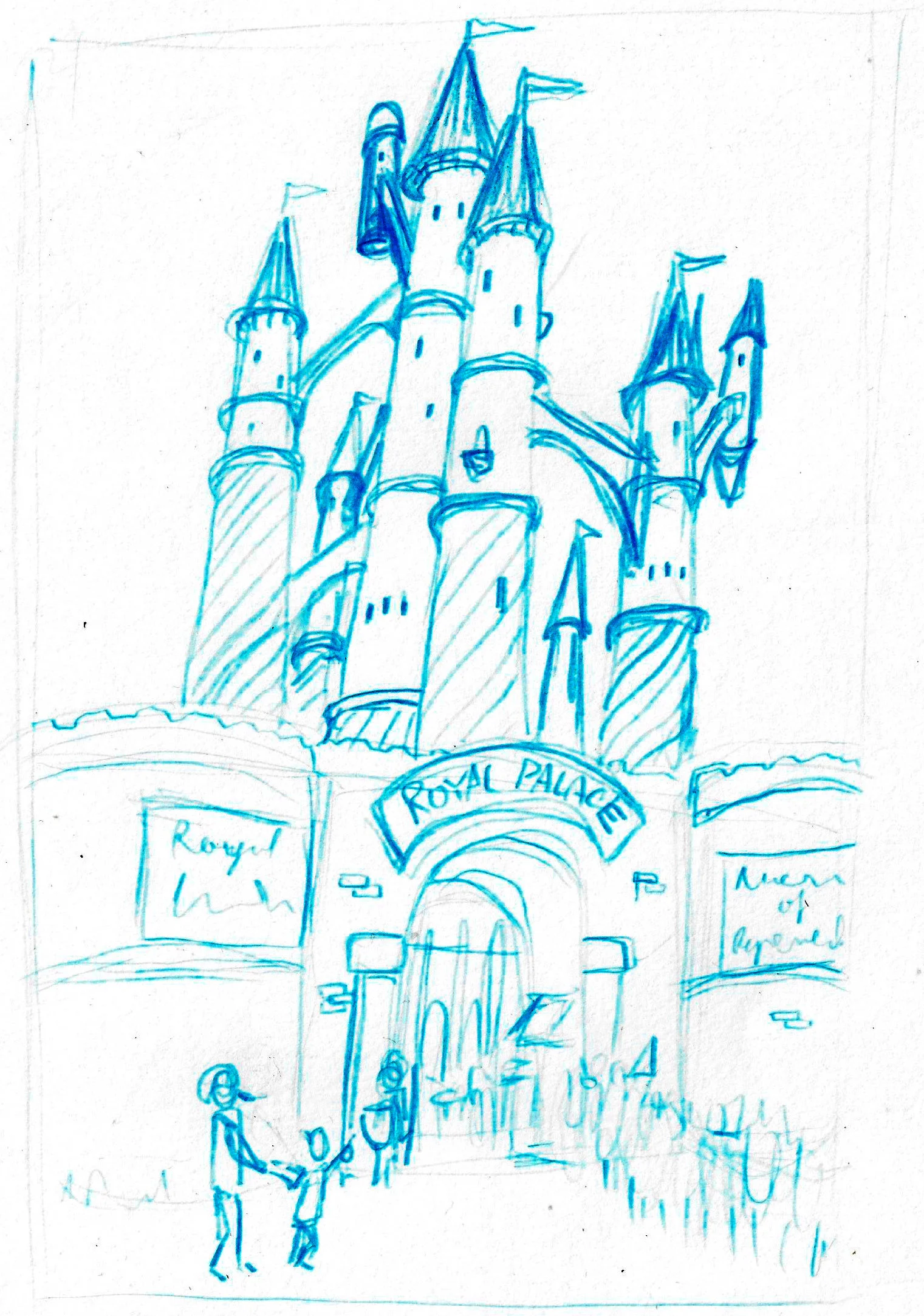 I did my sketches in layers, so that I could change and adjust each layer without having to redraw other elements. I you can see all of the layers combined at the end of the sequence below: