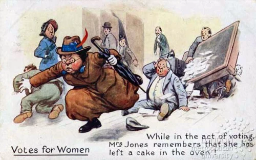 Another form of otherness that I looked into was the Suffrage movement of the late 19th and early 20th centuries. There was much negative propaganda against the movement, including from other women. Note the way that these illustrations try to depict activists as both violent man-haters as well as conforming to gender stereotypes of only really being interested in fashion and cookery.